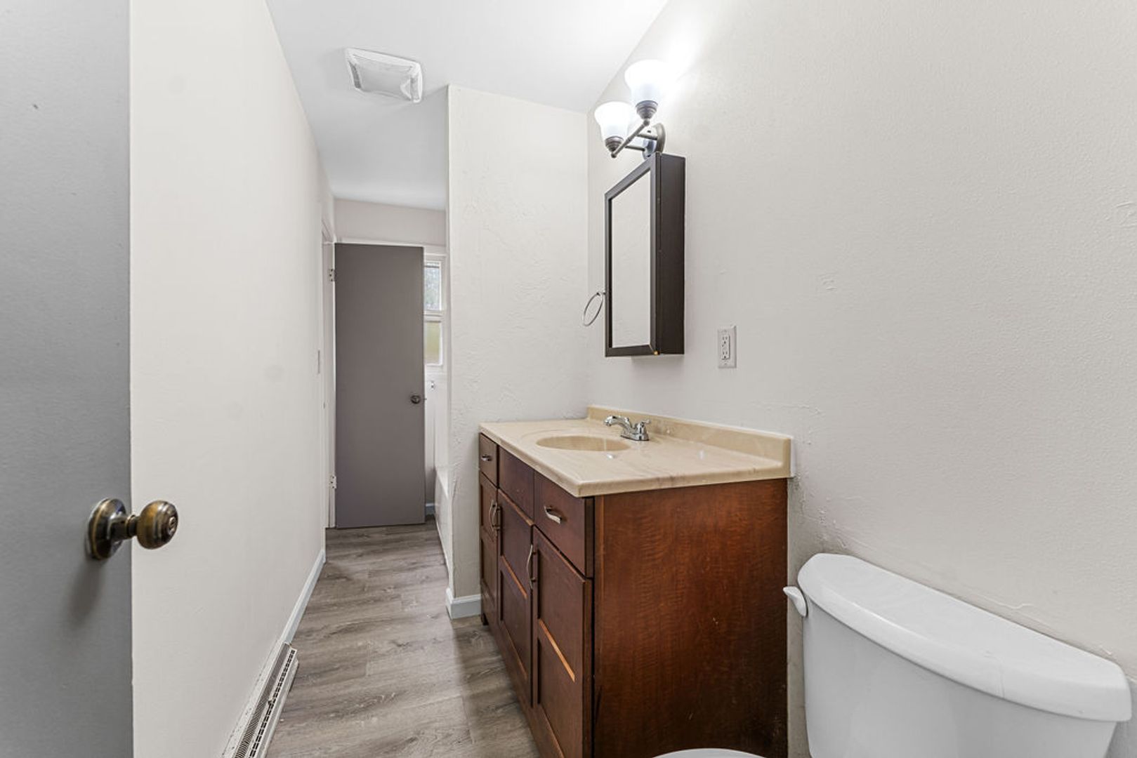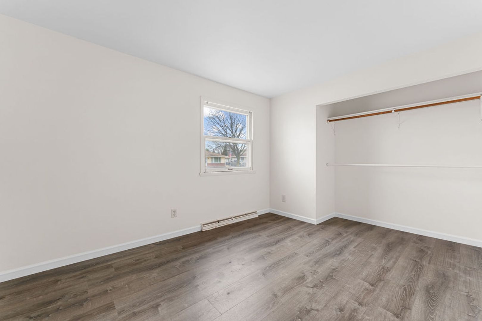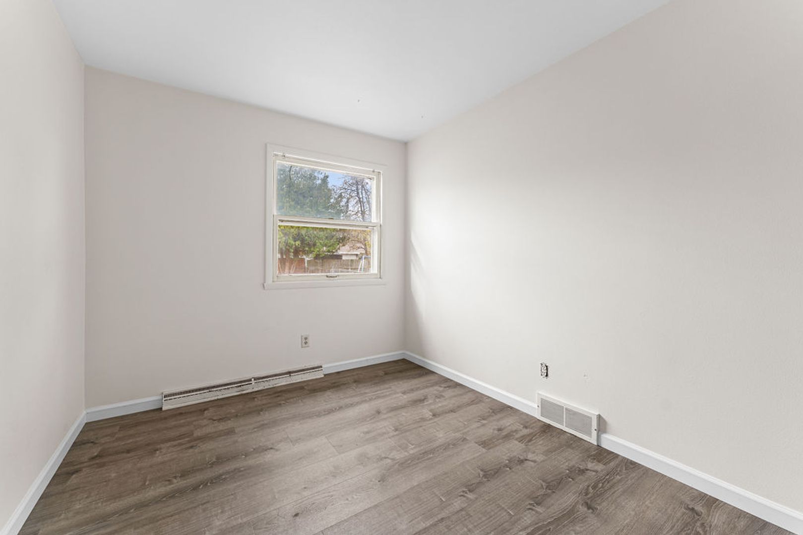 The three spacious bedrooms are all well-sized, each with ample closet space and a neutral color palette, allowing for easy personalization. The bathroom is updated with contemporary finishes and provides a clean, modern feel.